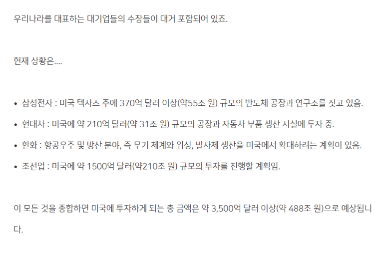 미국에 대규모 투자를 요청하고 있는 중이죠!