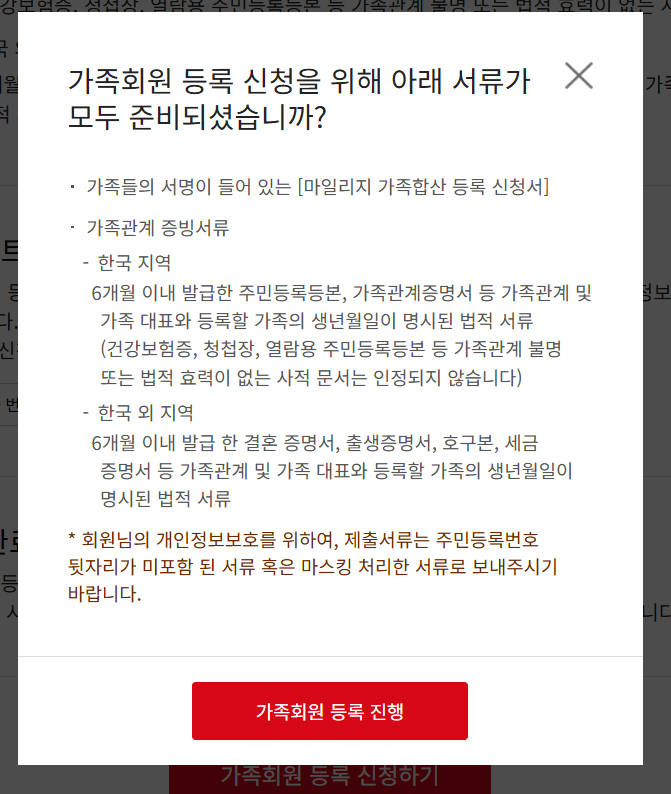 가족합산 마일리지 신청을 위한