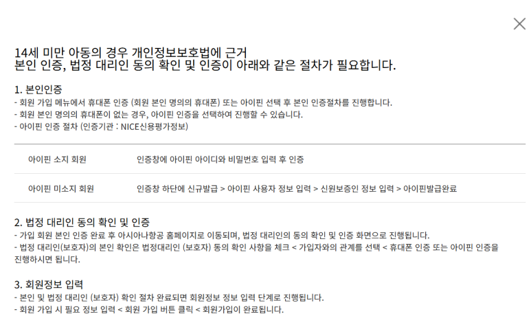 2) 만 14세 미만 미성년자 회원가입 절차