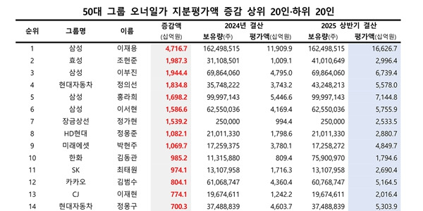 삼성그룹 오너 일가의 자산은 올해 상반기 총 10조 446억 원 늘었다.