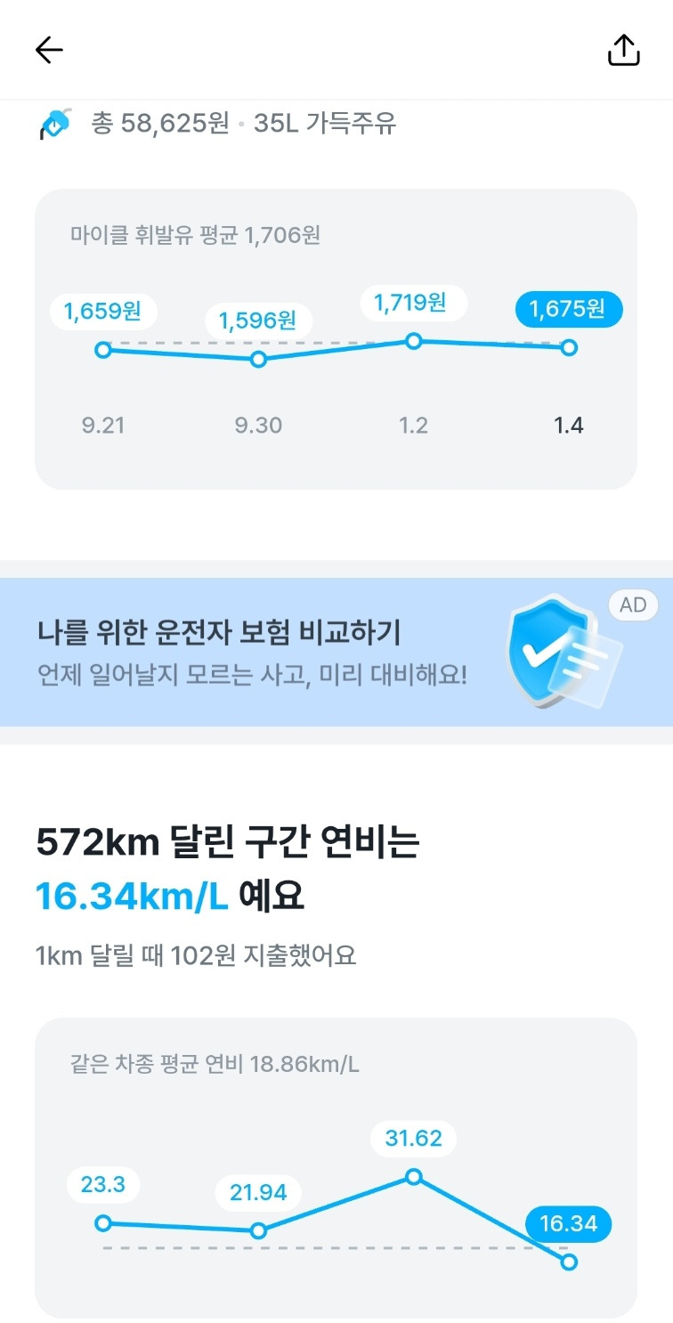 겨울철 17km/l보다는 과속을 했더니 연비가