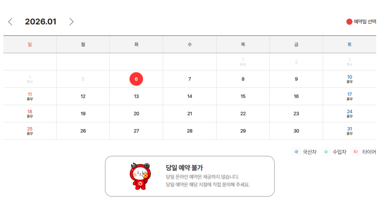 확인했더니, 토요일 예약이 가능해서 바로 예약!