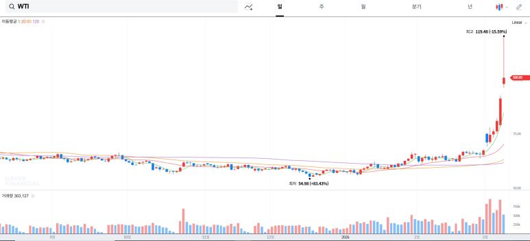 미-이란 전쟁 전 50~60 달러 선이던