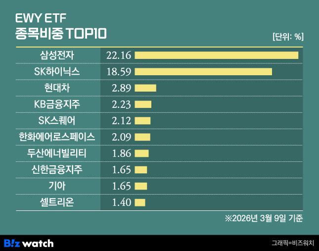 지난달 27일 기준 EWY의 삼성전자 비중은 29.75%로 25%를 훌쩍 넘었고,