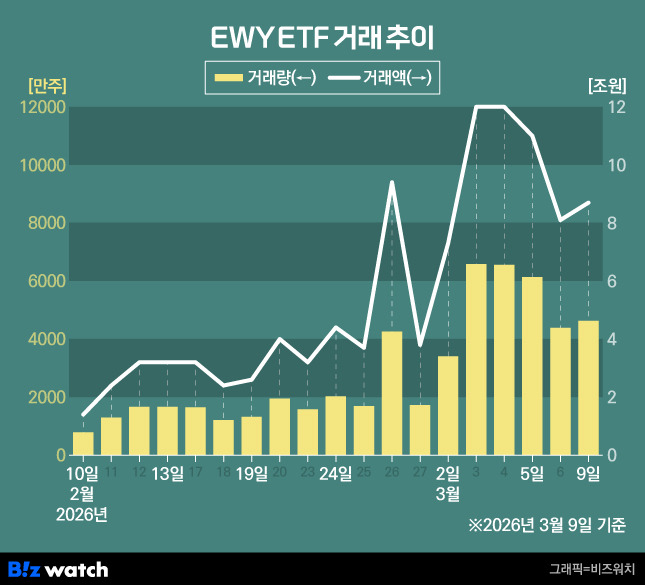 실제로 EWY ETF 거래액은 지난해까지만 해도 일평균 1조 원이 채 되지 않았지만,